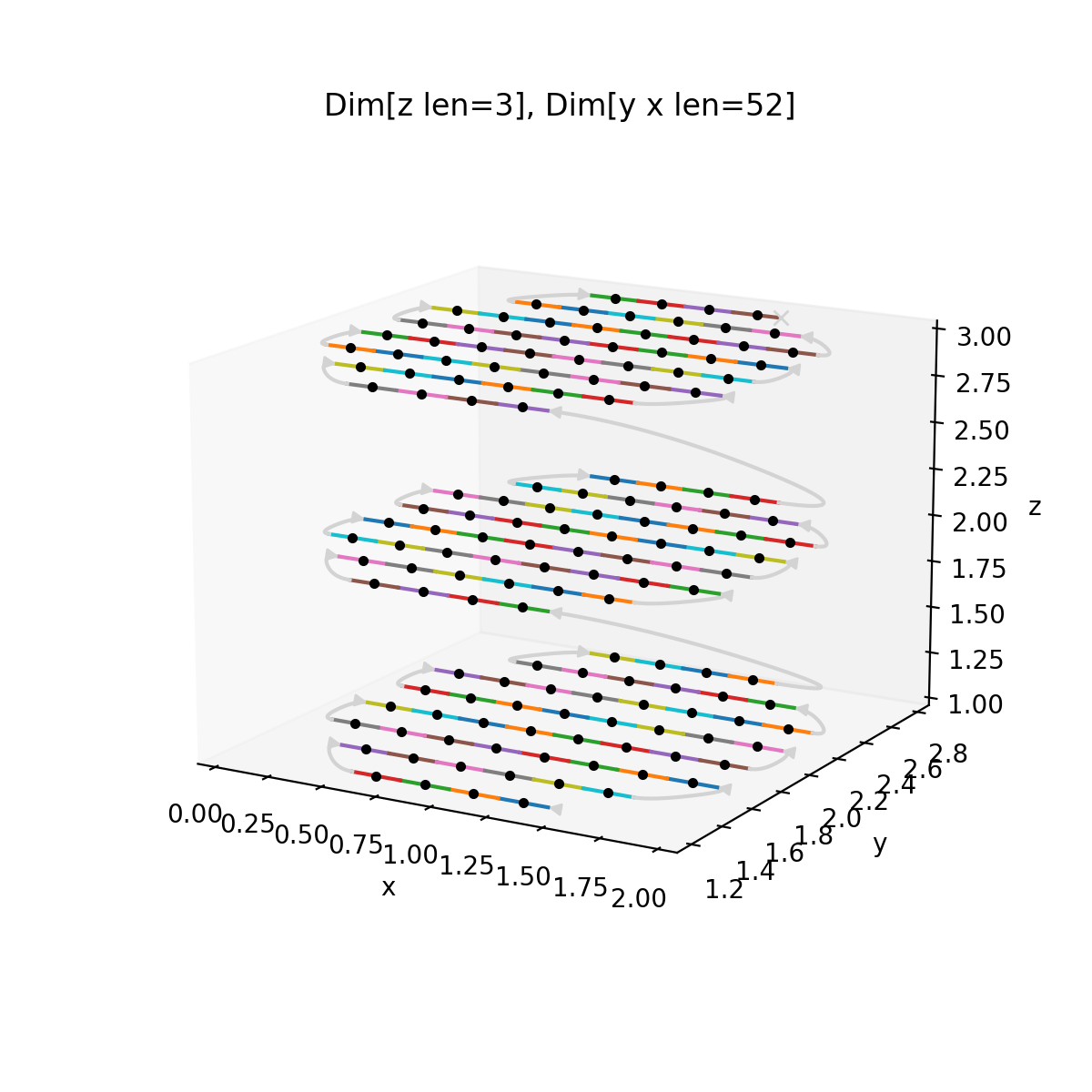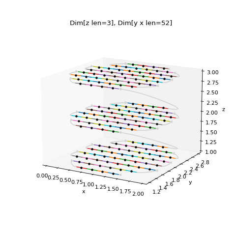 # Example Spec from scanspec.plot import plot_spec from scanspec.specs import Line from scanspec.regions import Circle cube = Line("z", 1, 3, 3) * Line("y", 1, 3, 10) * ~Line("x", 0, 2, 10) spec = cube & Circle("x", "y", 1, 2, 0.9) plot_spec(spec)