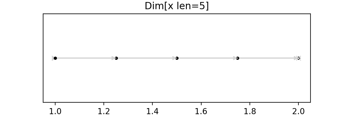 $ scanspec plot 'Line(x, 1, 2, 5)'