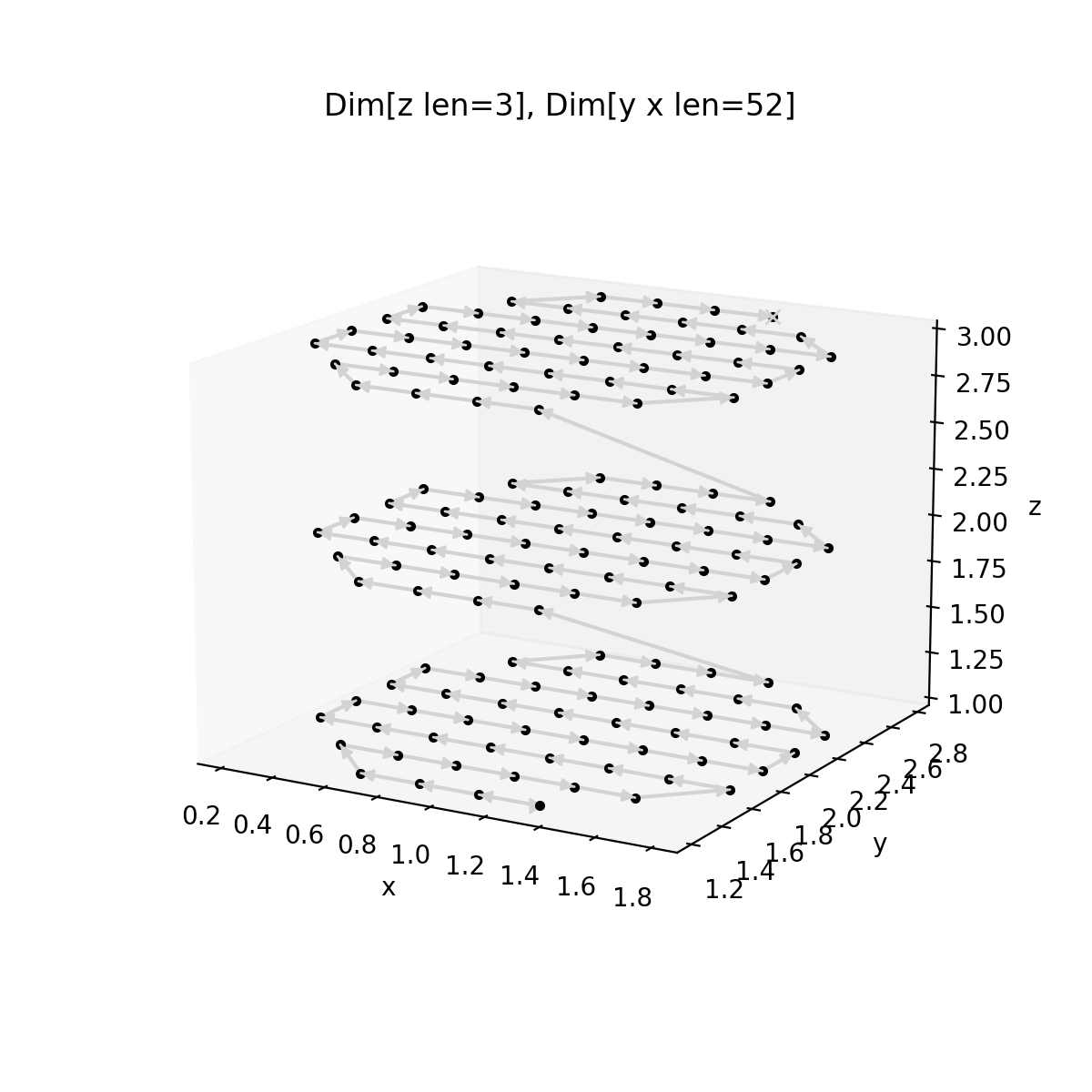 # Example Spec from scanspec.plot import plot_spec from scanspec.specs import Line from scanspec.regions import Circle cube = Line("z", 1, 3, 3) * Line("y", 1, 3, 10) * ~Line("x", 0, 2, 10) spec = cube & Circle("x", "y", 1, 2, 0.9) plot_spec(spec)